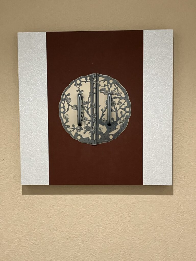 そして、個別のトイレへ入ると、正面に、和箪笥の飾り取っ手のような梅のオブジェが飾ってあります。