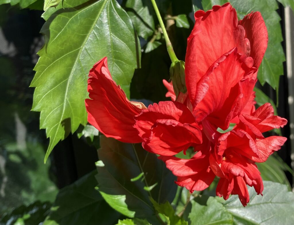 それを喜ぶように、ベランダのハイビスカスが、キラキラっと咲いています。
