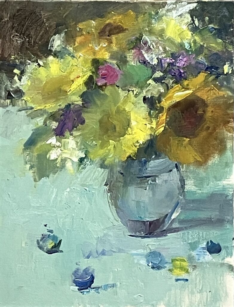 この日はよく晴れていて、窓辺の自然光で描く私には、モチーフがよく見やすくて明暗、陰影が捉えやすかったので、わりといい感じの動きが画面におさまりました。