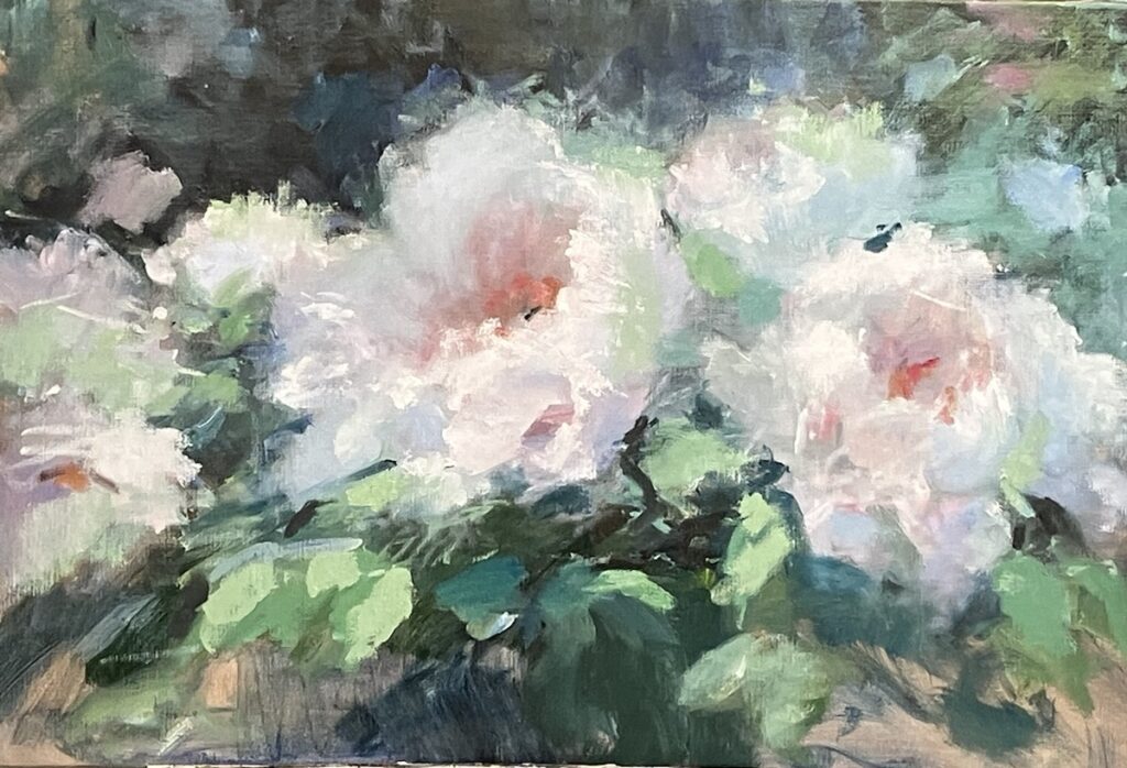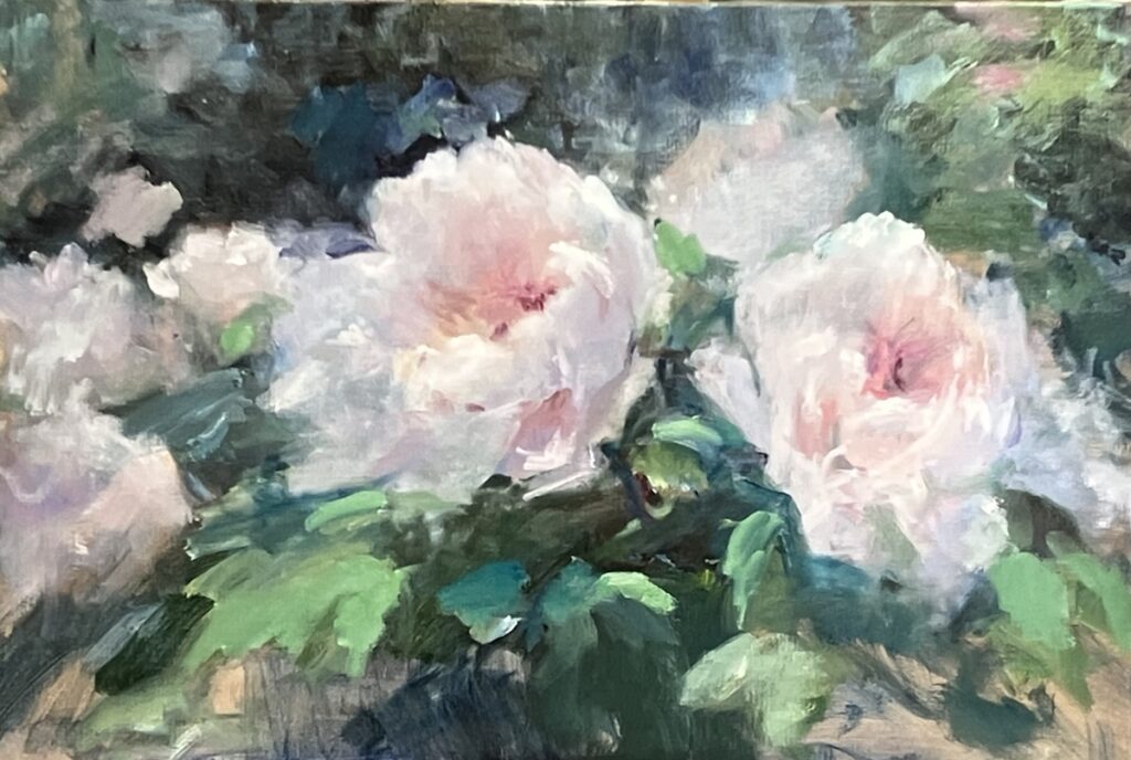 美しい花の描き方・アプローチがいつも私自身上手く行かないと苦手意識を募らせていたわけですが、元来人の目は印象的・感動を受けた所にまず引き寄せられ、その他の部分は視界に入っていても脳であまり知覚されていないものである事。その知覚部分というか、作家の感じ方を2次元で鑑賞者に再体験させるものなんだなぁと、改めて腑に落ちた気分です。