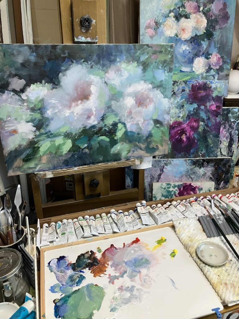 写真のように描く方法もありますが、できたら油絵具という美しい色彩の物質感を使って絵画にしたいなぁと思いながら、今日も、なかなか思うようにいかない世界に浸っております。