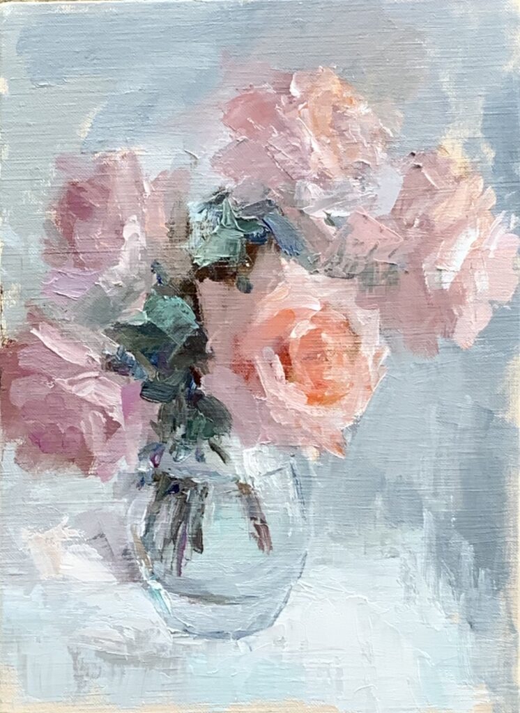 この日はあいにくの曇り空だったので、思いっきり窓辺へ寄せて描いたのですが、それでも自然光が弱くて、色彩が鈍らないように気をつけながら一気に描きました🎨