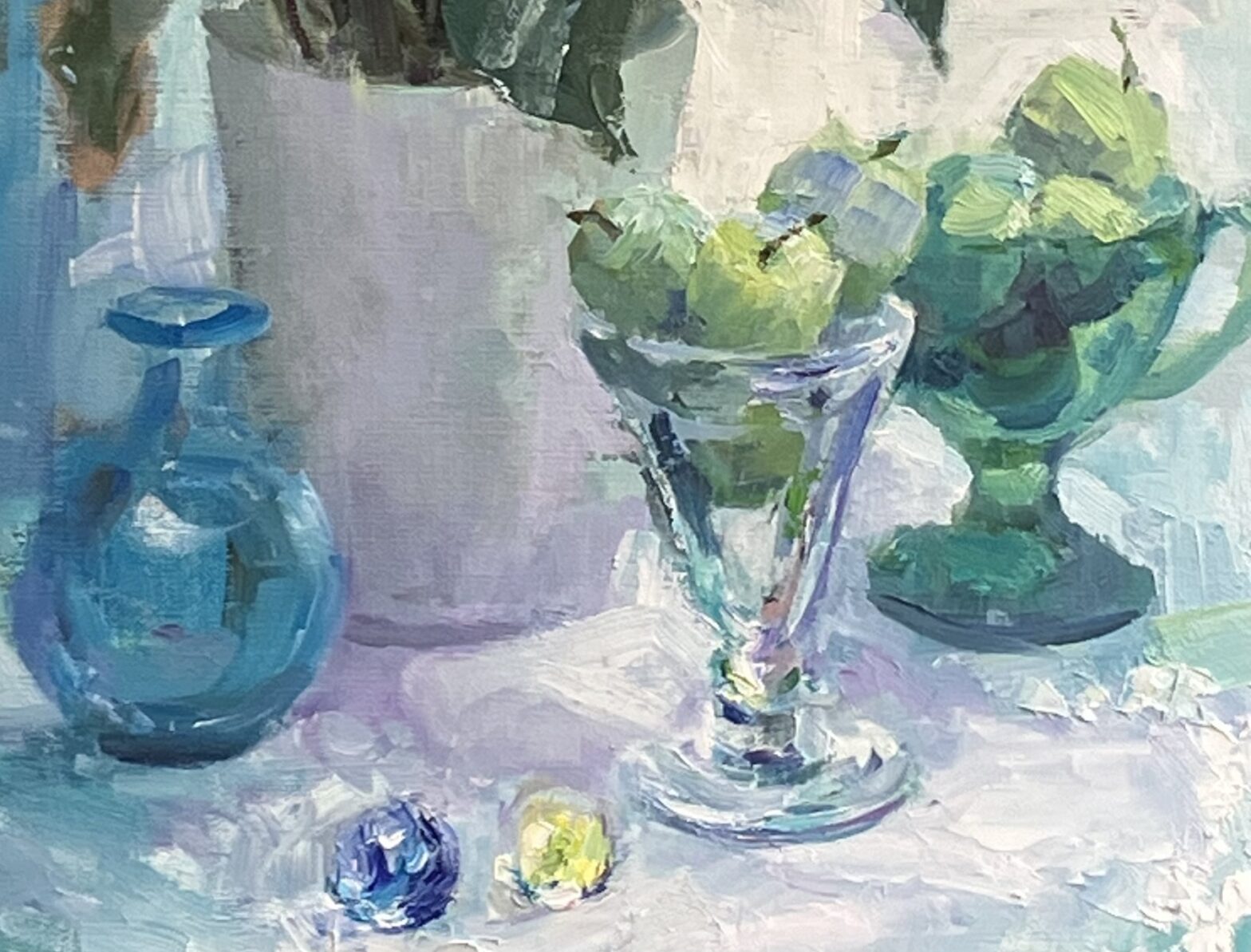 今朝はずいぶんしのぎやすくなりました。 アンスリウムのある静物画、まぁ何とか仕上げました。 全体はこんな感じ。 今回描いたガラス器たちは、いつかモチーフで描こうと思い、ずっと手元に置いていたものたちです。 右側の緑色のガ… 続きを読む アンスリウムのある静物②