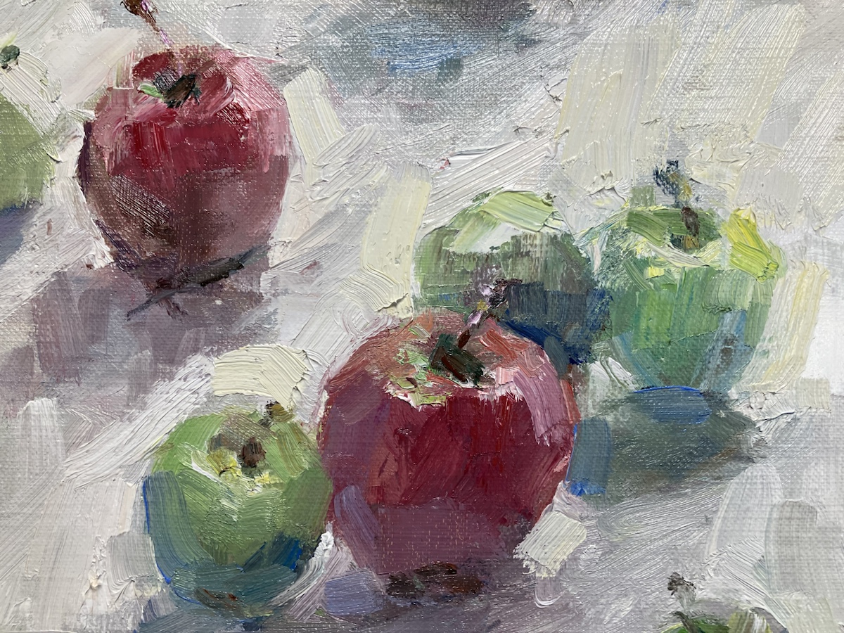 先週描いた小さなりんごの絵、サムホールサイズ(227×158㎜)では小さすぎて、画面の空間も構成も表現しずらい、ということがわかりました。 ので、さらにキャンバスサイズを倍くらしの大きさにしてもう一枚、今度は4号サイズ(… 続きを読む もう一枚チャレンジ